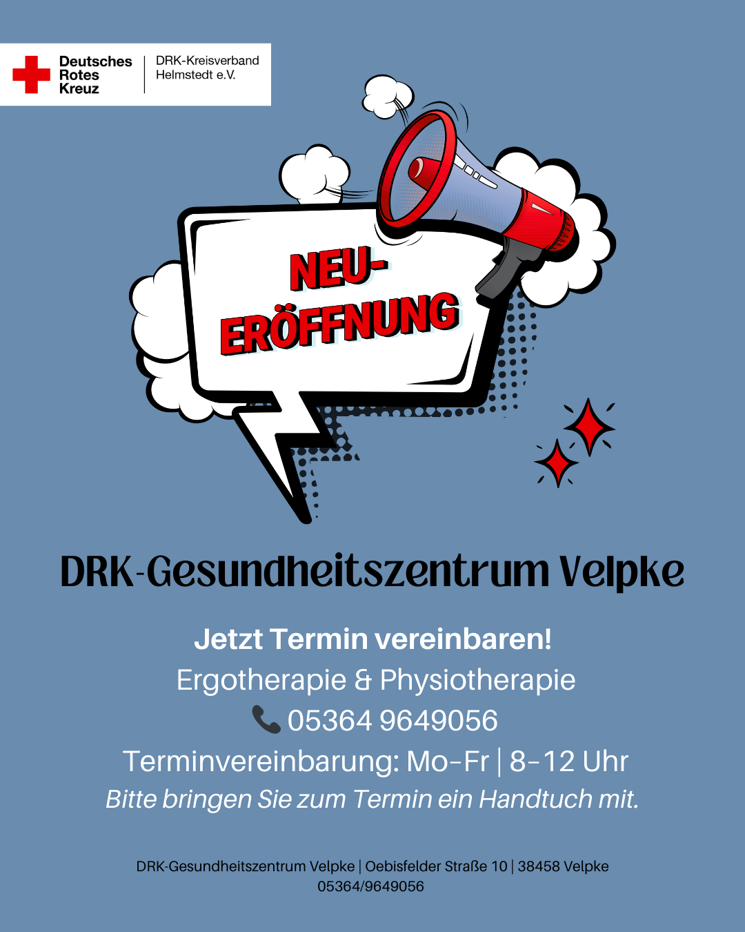 Neu in Velpke! Das DRK-Gesundheitszentrum Velpke, Oebisfelder Straße 10, hat geöffnet!