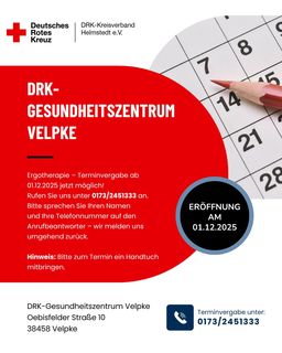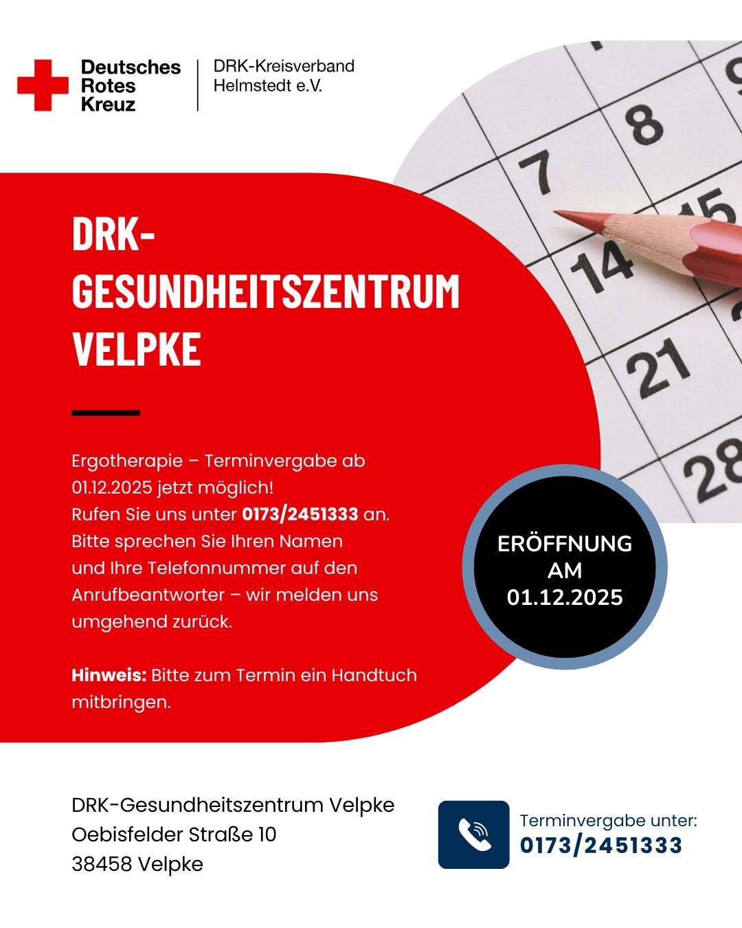Das DRK-Gesundheitszentrum Velpke in der Oebisfelder Straße 10 eröffnet am 01.12.2025.