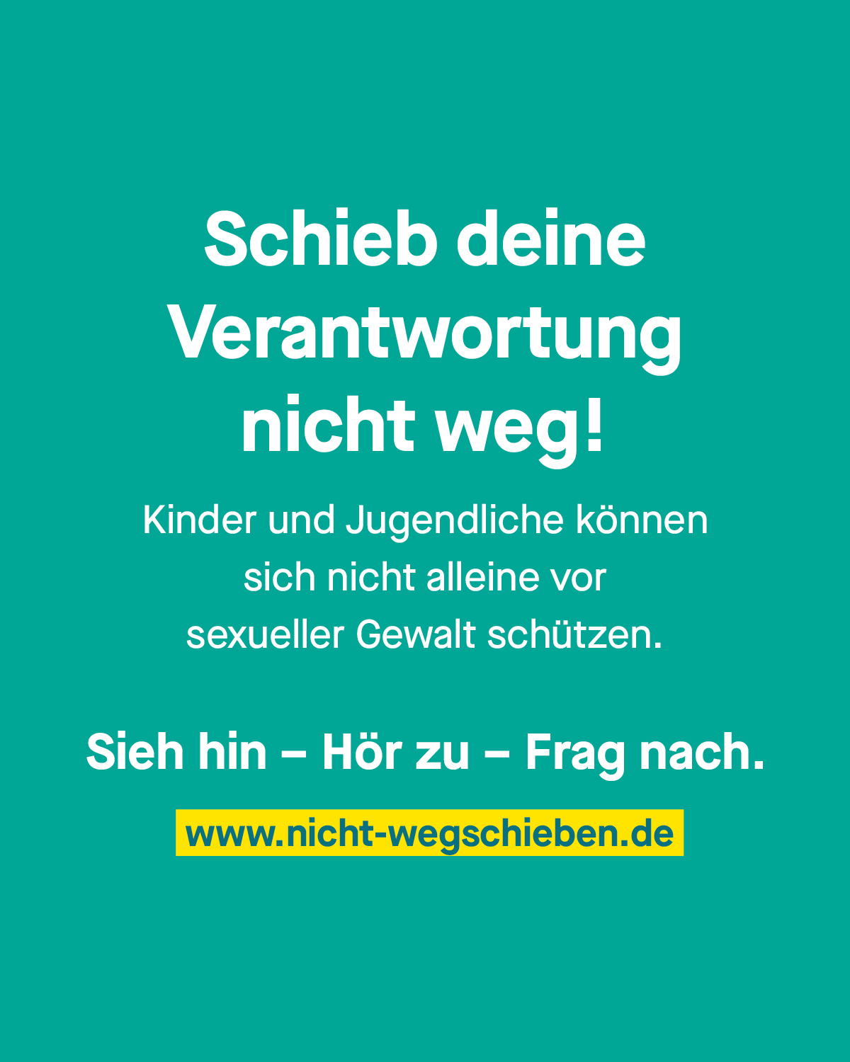 Die Kindertagesstäten des DRK Kreisverband Helmstedt e.V. unterstützen die Kampagne „Schieb den Gedanken nicht weg!“, um Sensibilisierung, Aufklärung und Handlungswissen gegen sexuelle Gewalt an Kindern und Jugendlichen zu verbreiten. Mit dieser Präventions- und Aktivierungskampagne werden die steigenden Zahlen der polizeilich erfassten Fälle von sexueller Gewalt an Kindern und Jugendlichen in den Fokus gerückt. Sie dient dem aktiven Kinderschutz und richtet sich an die Verantwortung von Erwachsenen. Denn: Kein Kind kann sich alleine schützen!